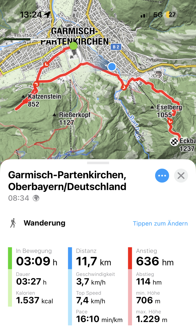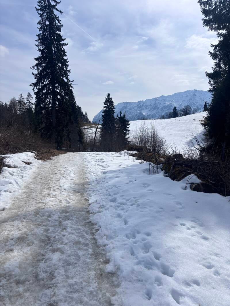 Am 24.03.2026 startete ich meine Wanderung am Bahnhof von Garmisch-Partenkirchen. Von dort führte mich der Weg zunächst in Richtung Rissersee, wo ich die idyllische Landschaft genießen konnte. Anschließend ging es weiter zum Olympia-Skisprungstadion.