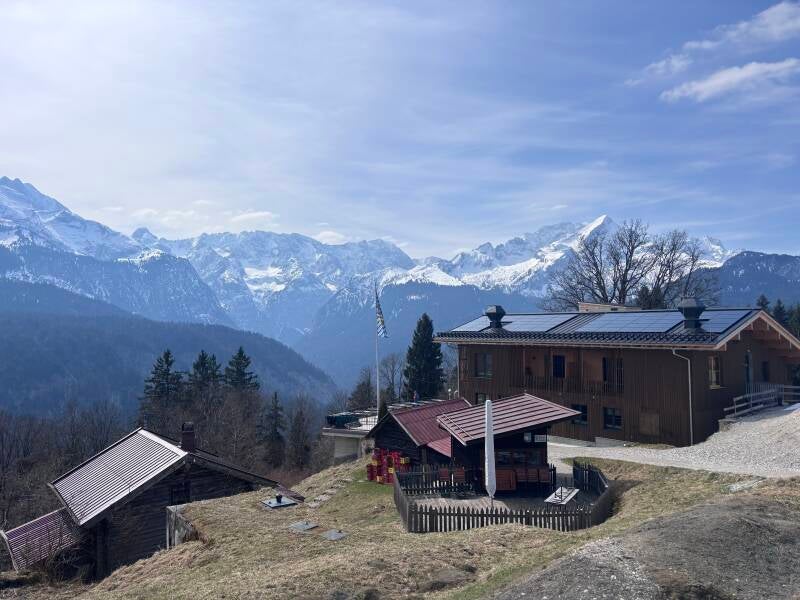 Die Wege sind insgesamt gut ausgeschildert und markiert, verlangen aber dennoch Trittsicherheit. Oben angekommen wurde ich mit einem atemberaubenden Blick auf das Wettersteingebirge belohnt. Von der Bergstation der Eckbauerbahn sind es nur noch etwa 5 Minuten bis zum Eckbauer Gasthof– leider war diese bei meinem Besuch geschlossen.